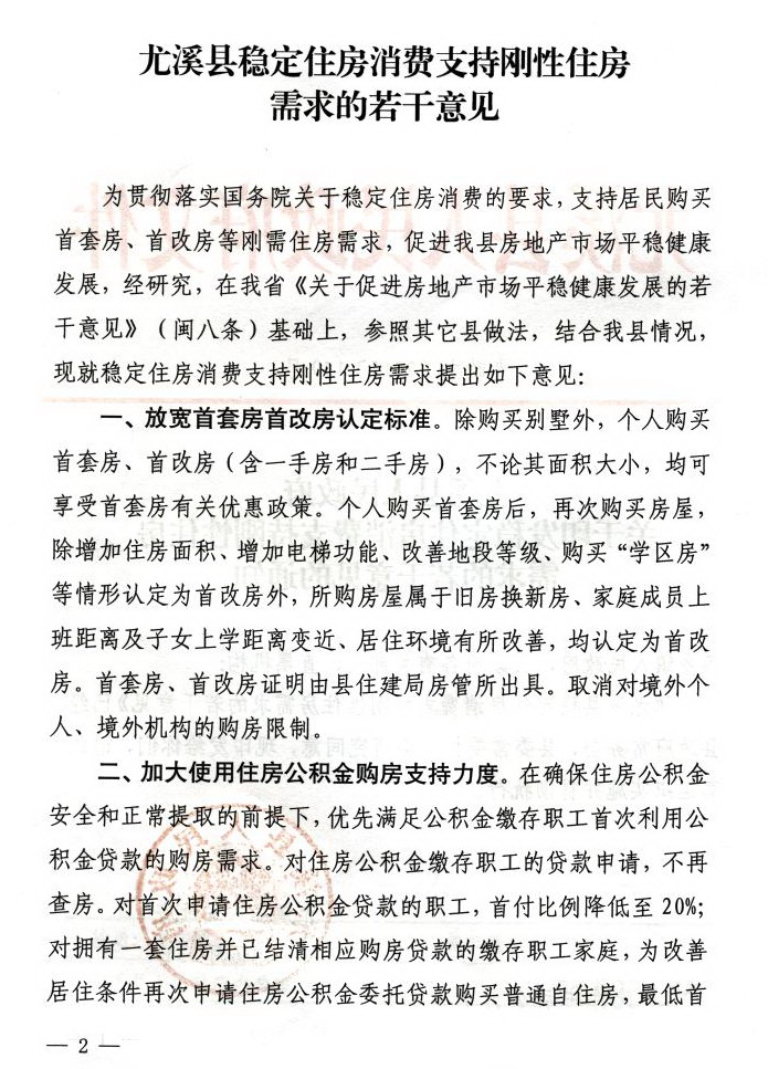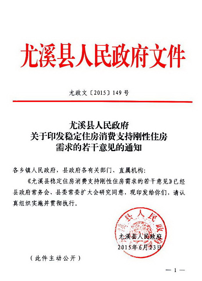 尤溪县人民政府关于印发稳定住房消费支持刚性住房需求的若干意见的通知